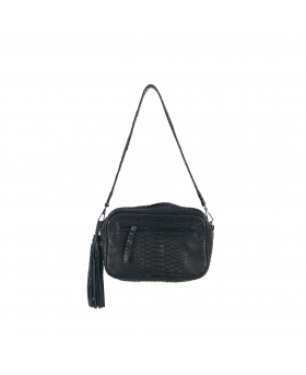 Sac bandoulière en cuir véritable - noir et or