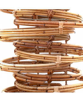Optez pour une suspension originale avec une forme en spirale. Fabriquée en rotin de façon artisanale par la cabane des filles vous pouvez opter pour une mise au sol pour créer un éclairage d\'appoint ou sur meuble...