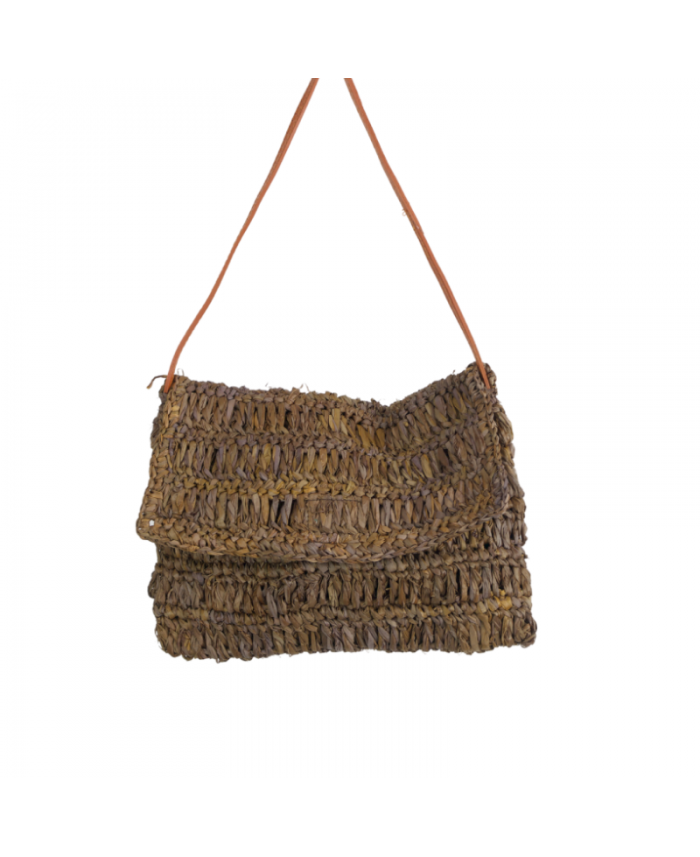 La pochette est le sac idéal pour une soirée ou pour se balader avec le minimum en ville ou vacances ! la pochette couleur marron avec sa anse en cuir naturel a un aspect très original avec son tressage fait main de palm leaf. Optez pour cette pièce capable de casser un ensemble très casual ou accompagner un style chic. Elle est proposée en 2 coloris par La cabane des filles.