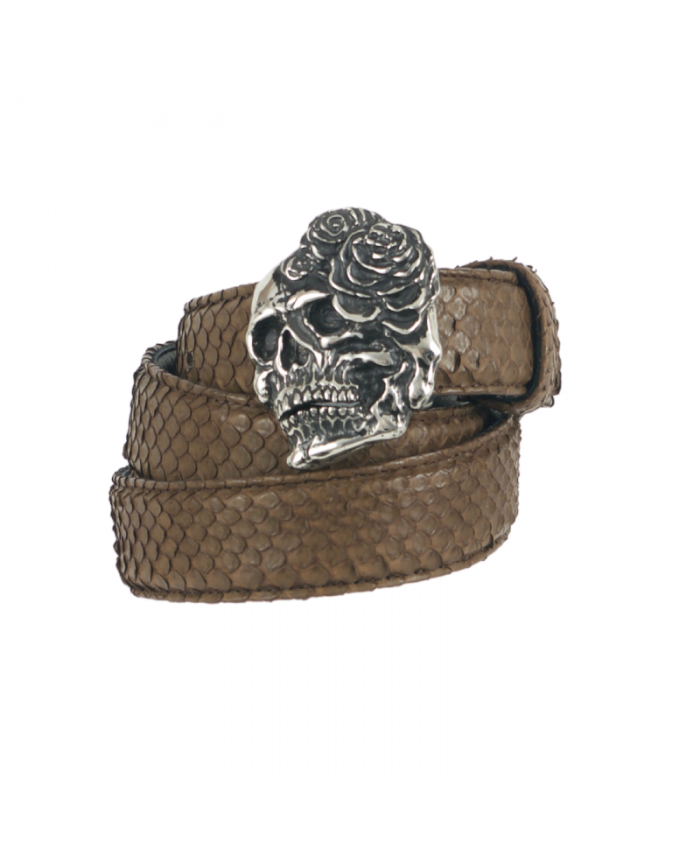 La ceinture marron en peau de python authentique avec sa boucle stylisée en tête de mort est l'accessoire de mode qui peut décaler un look vers le rock sur un style casual. Utile aussi pour apporter une touche tendance au chic d'une tenue élégante. La ceinture est proposée par la cabane des filles en 8 couleurs pour vous offrir la liberté de choix dans la construction de votre garde robe. Le + : deux tailles au choix !
