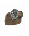 Ceinture en cuir véritable avec boucle forme tête de mort - marron
